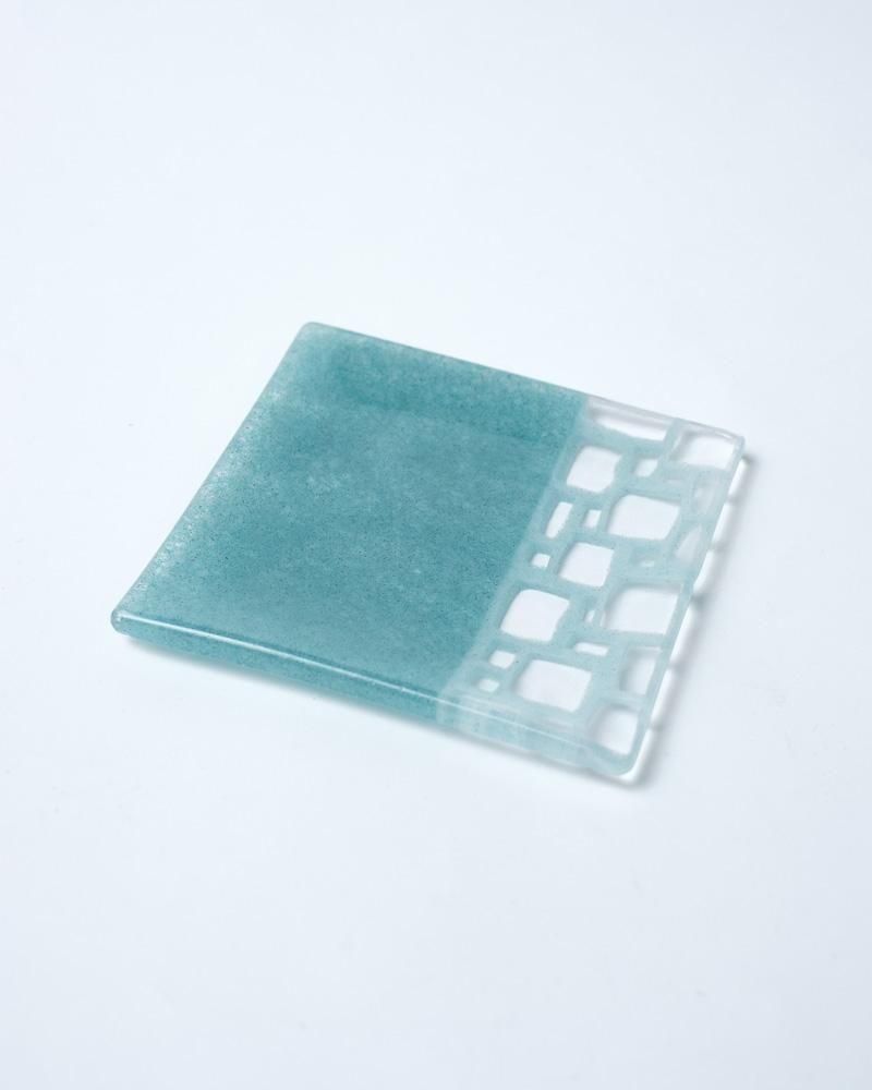 神通硝子製作所 あふみ 角皿 (小) はなだいろ