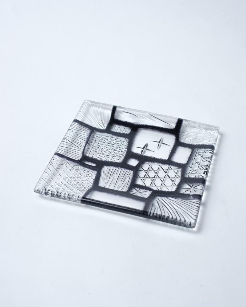 神通硝子製作所 あふみ 角皿 (小) きりこ黒 a