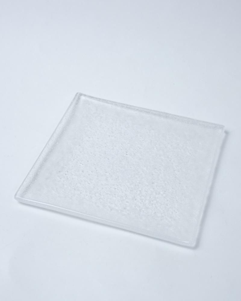 雪が溶けて、もう一度凍った”ざらめ雪”のようなガラス『しゃりしゃり』シリーズの角皿。