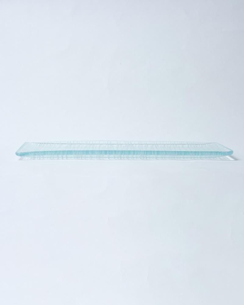 板ガラスに溝を彫り、色粉を詰めて模様を作っている『あやいと』シリーズの角皿。