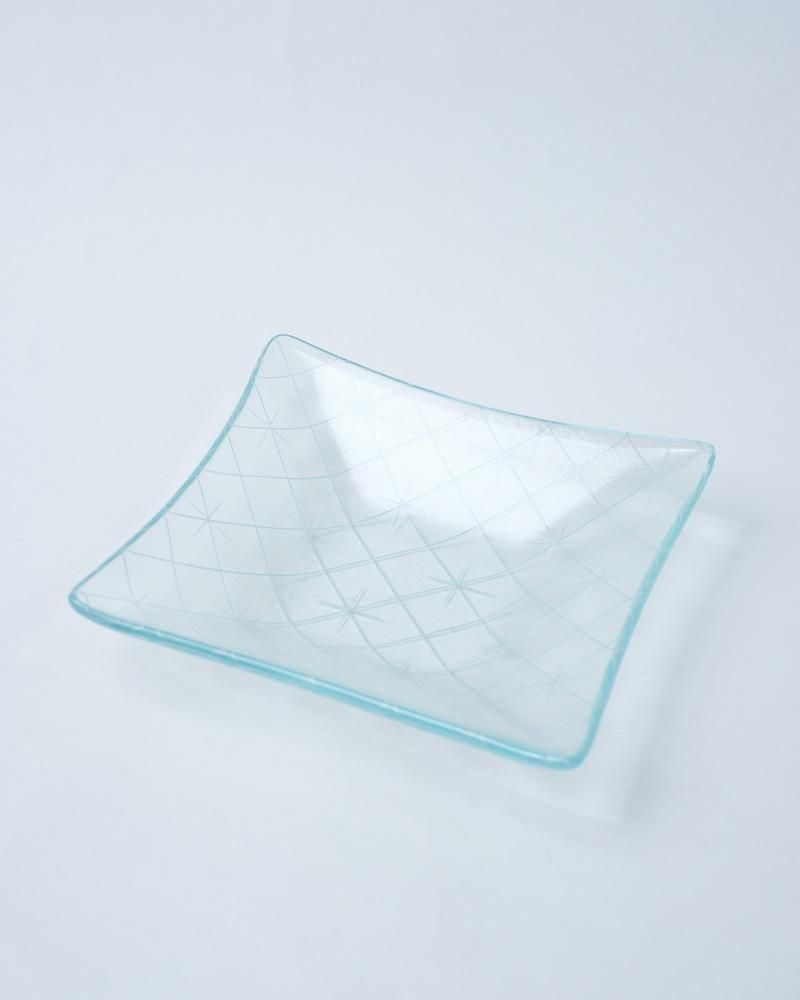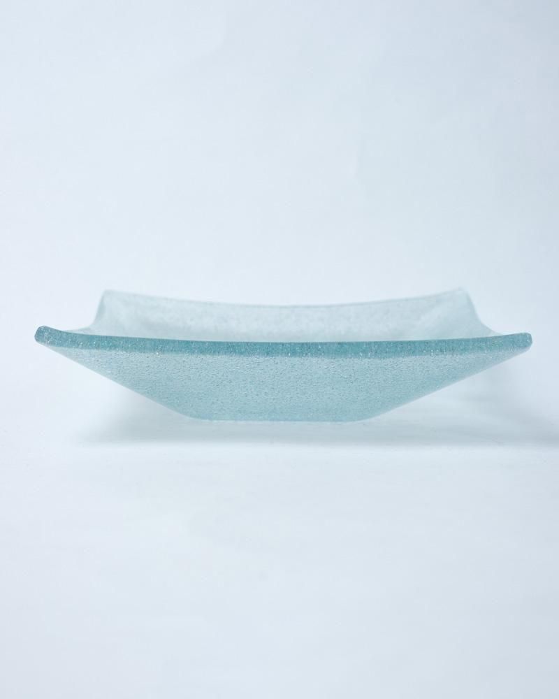 雪が溶けて、もう一度凍った”ざらめ雪”のようなガラス『しゃりしゃり』シリーズの角鉢。