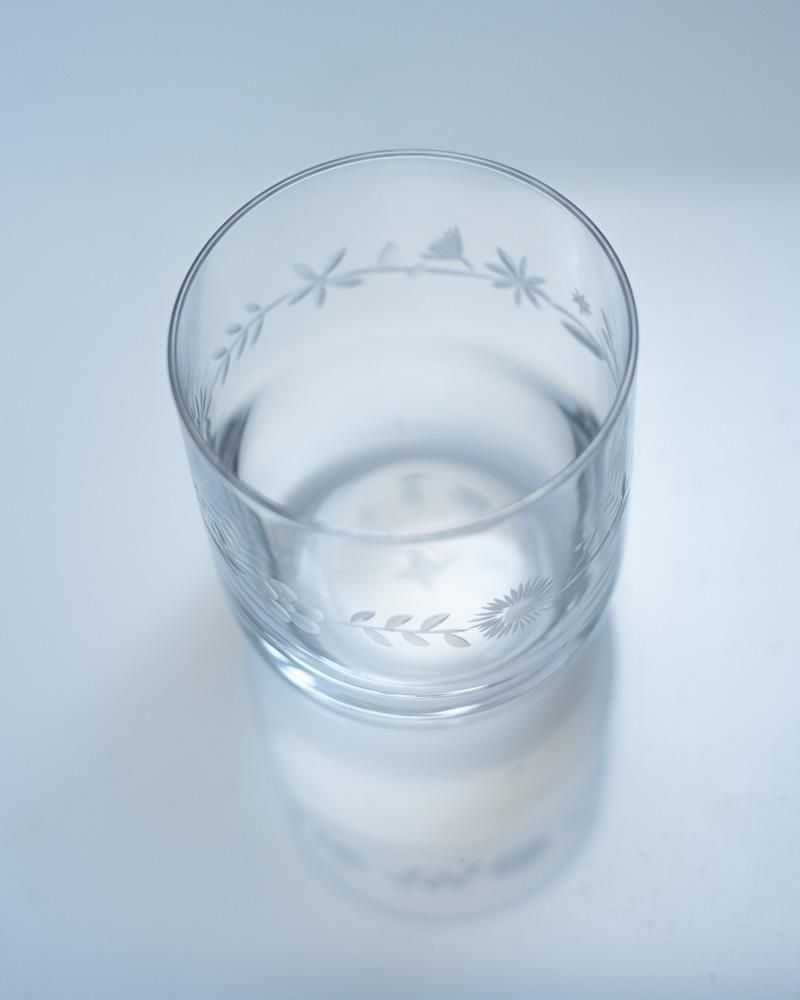 琵琶湖ほとりの草花をモチーフに切子が施された『ボタニカルキリコ』シリーズのグラス。