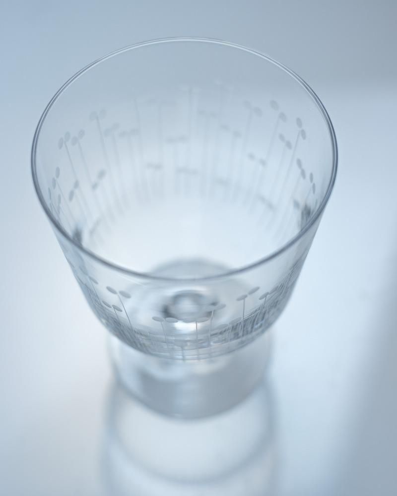 琵琶湖ほとりの草花をモチーフに切子が施された『ボタニカルキリコ』シリーズの足つきグラス。
