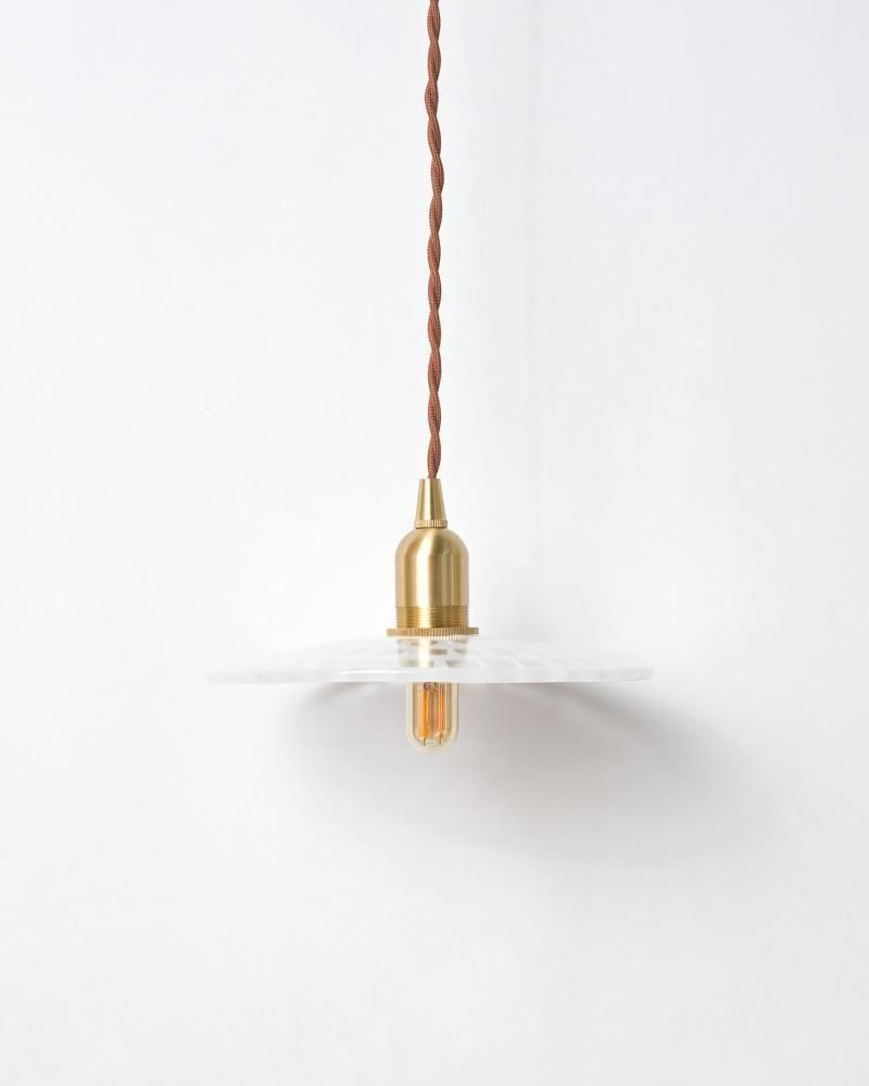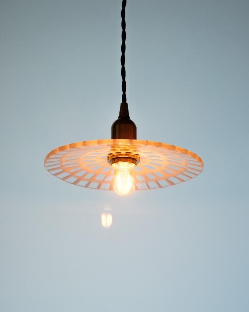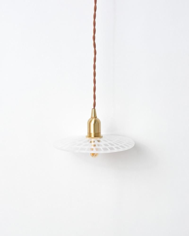 琵琶湖の波紋から着想した模様の『あふみ』シリーズのペンダントライト。
