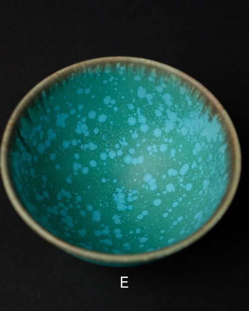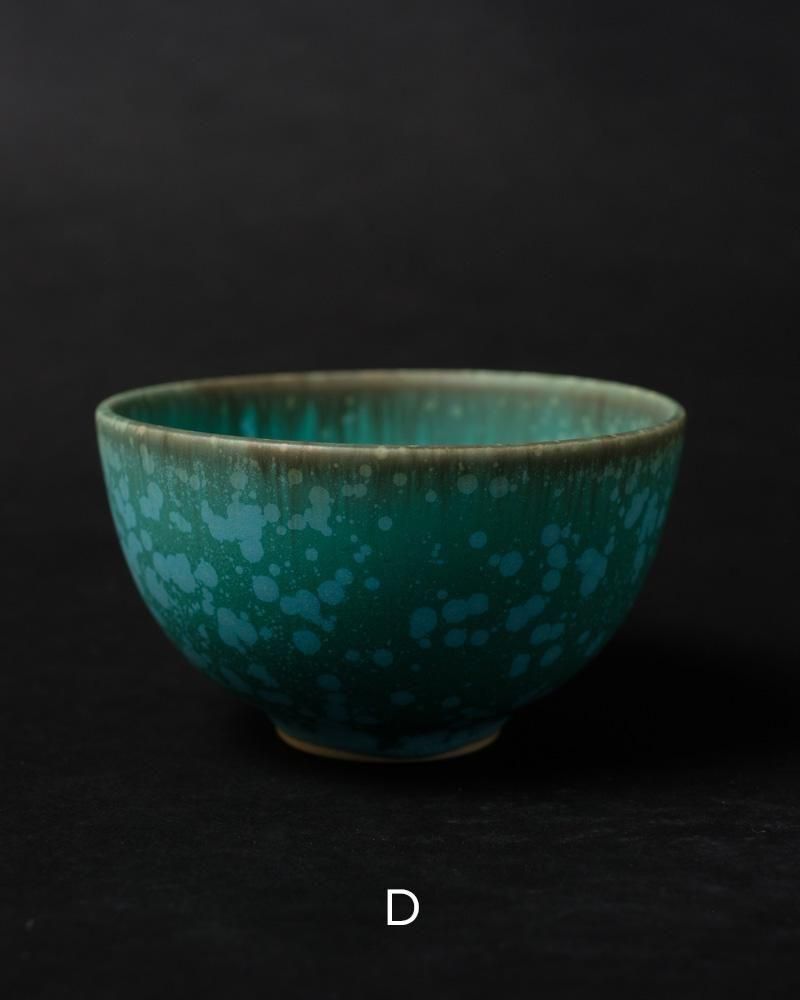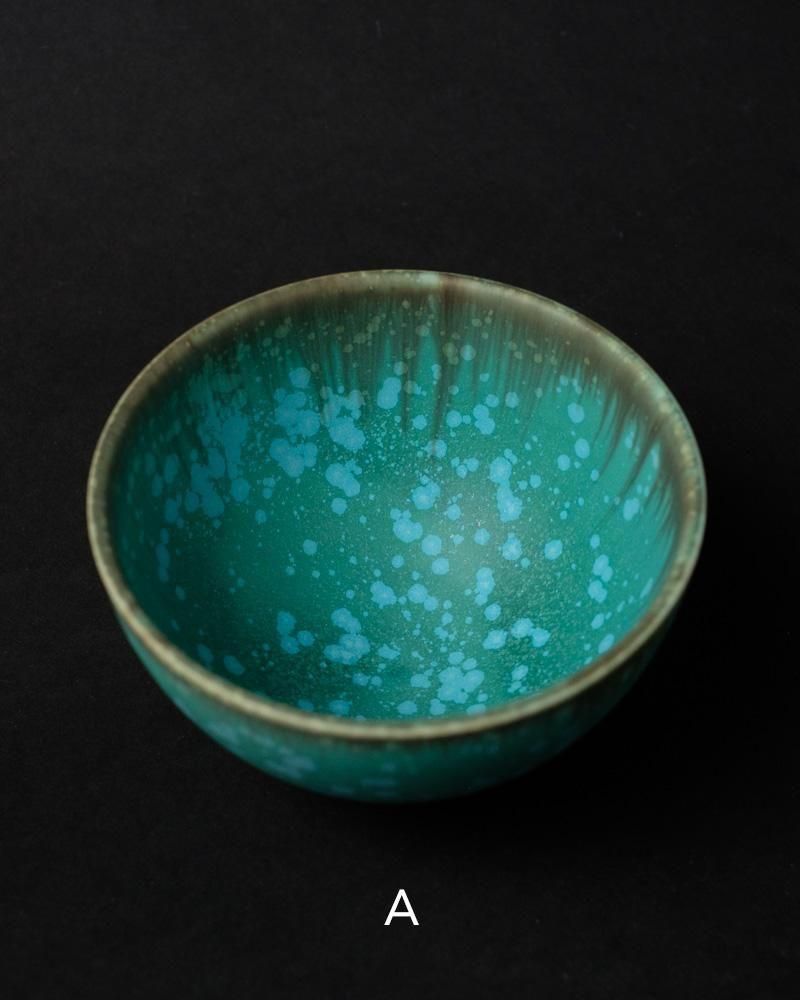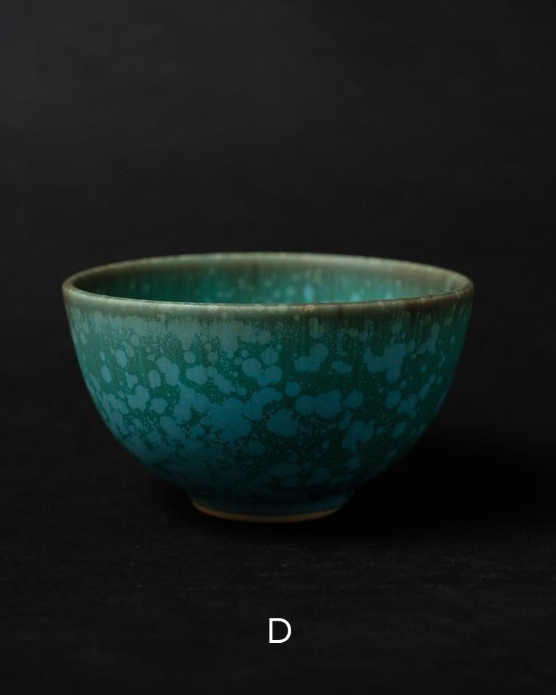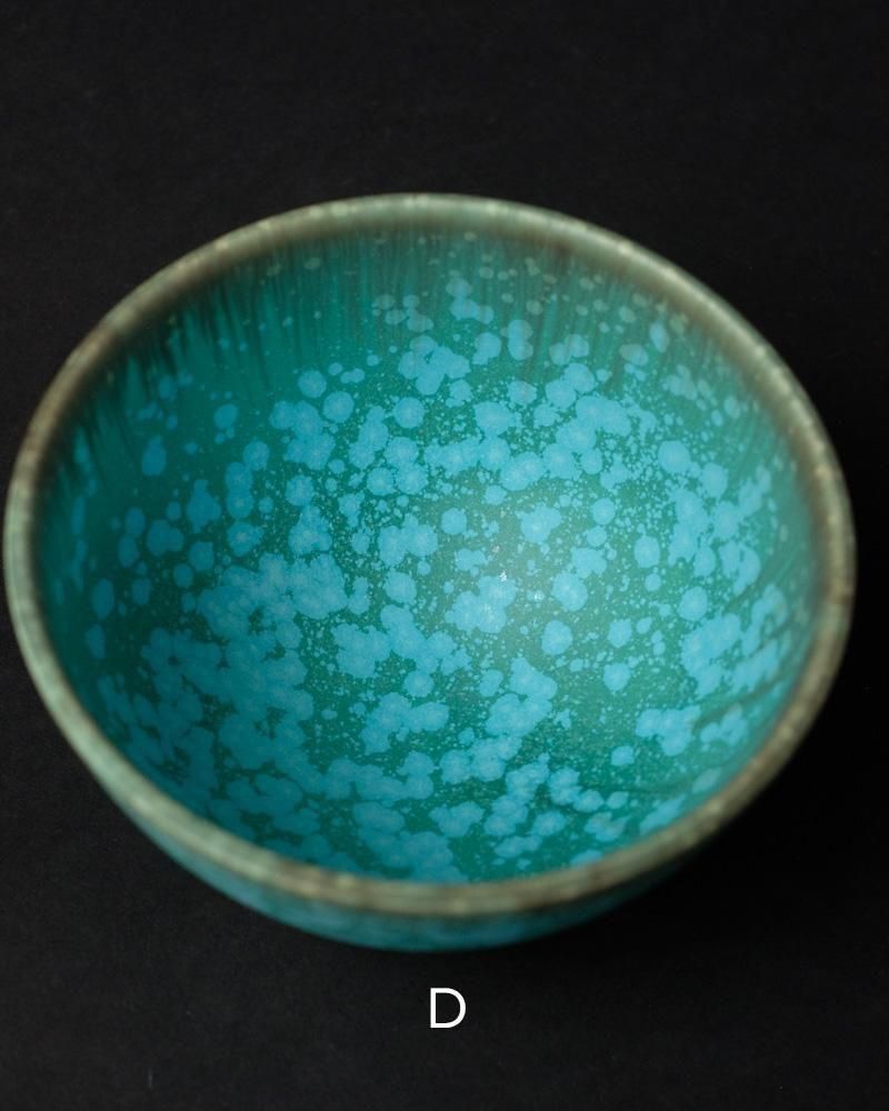 結晶釉という釉薬を用い、結晶の形成の仕方で1点1点表情が異なった仕上がりになります。