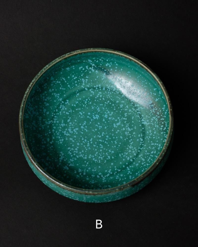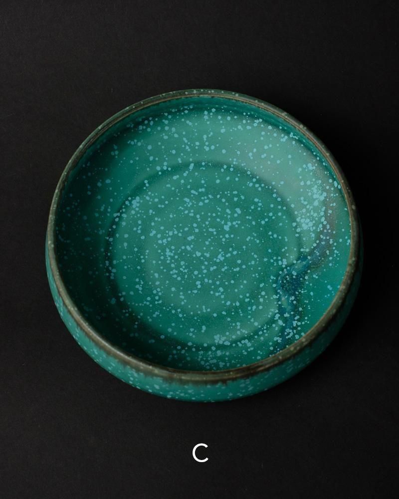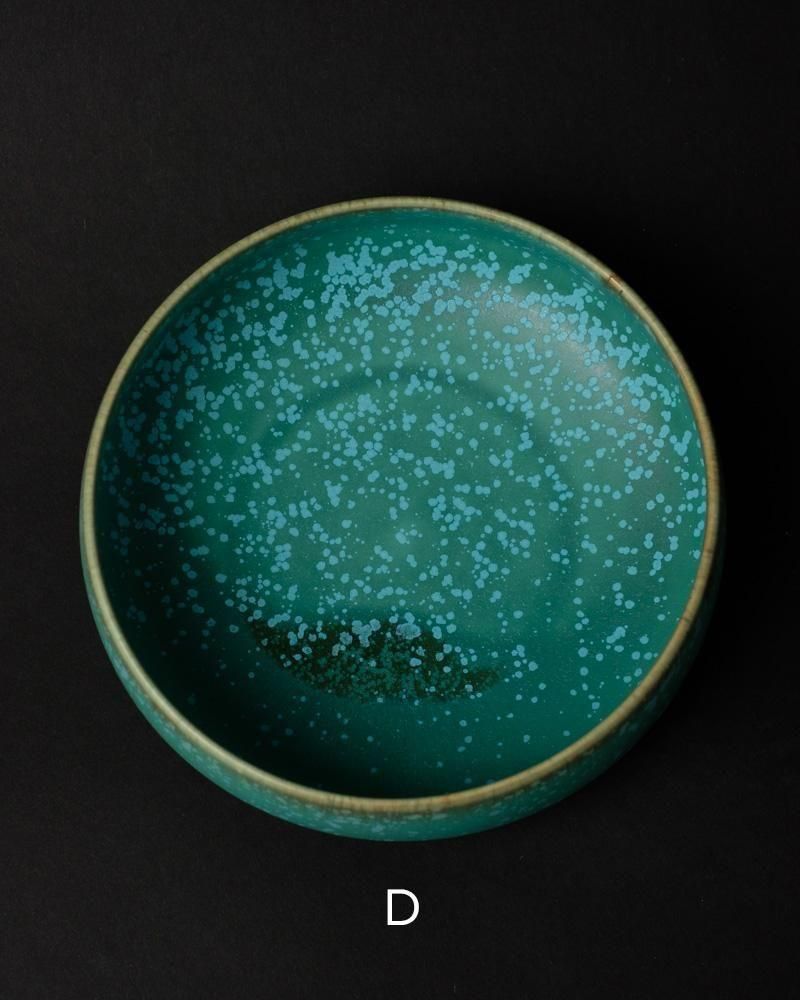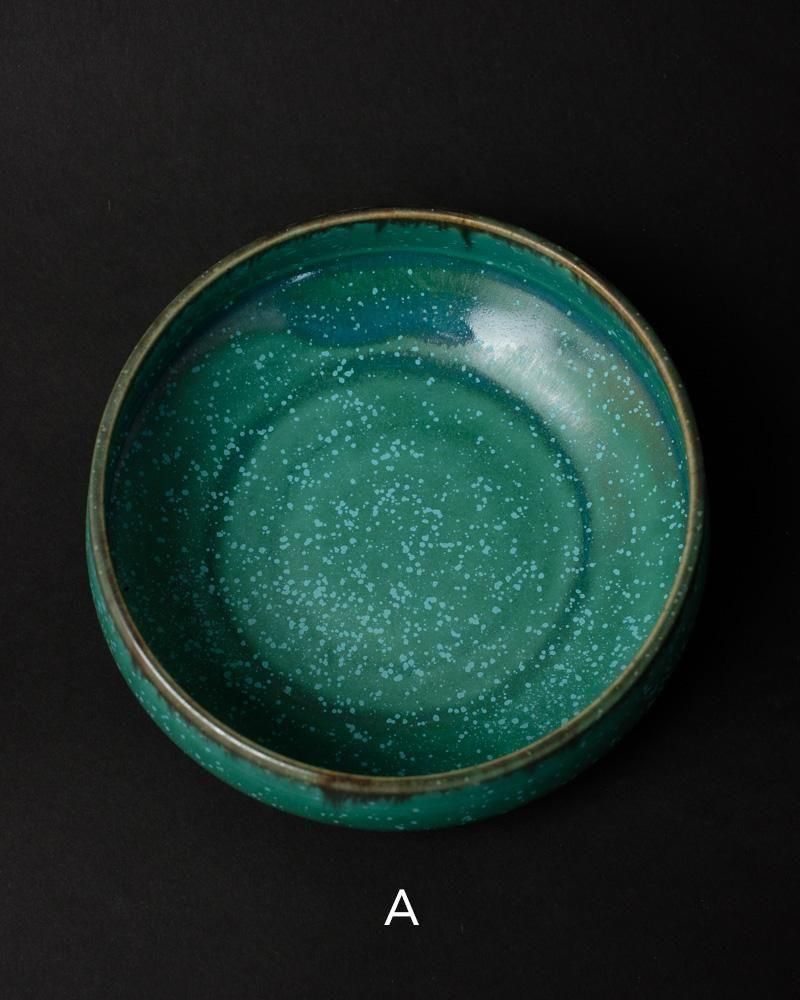 結晶釉という釉薬を用い、結晶の形成の仕方で1点1点表情が異なった仕上がりになります。