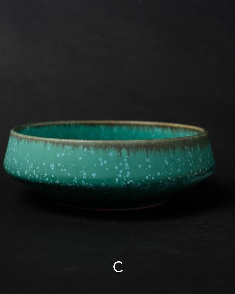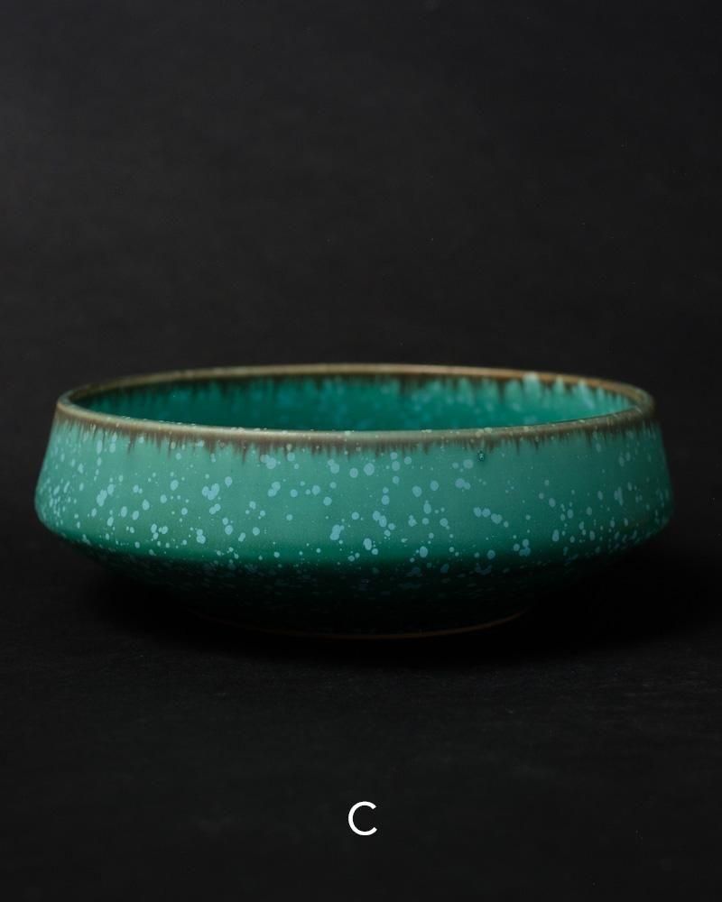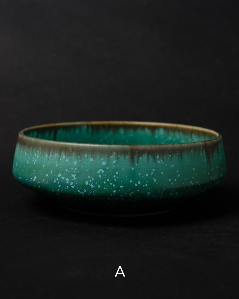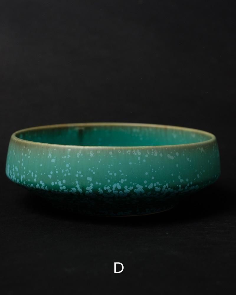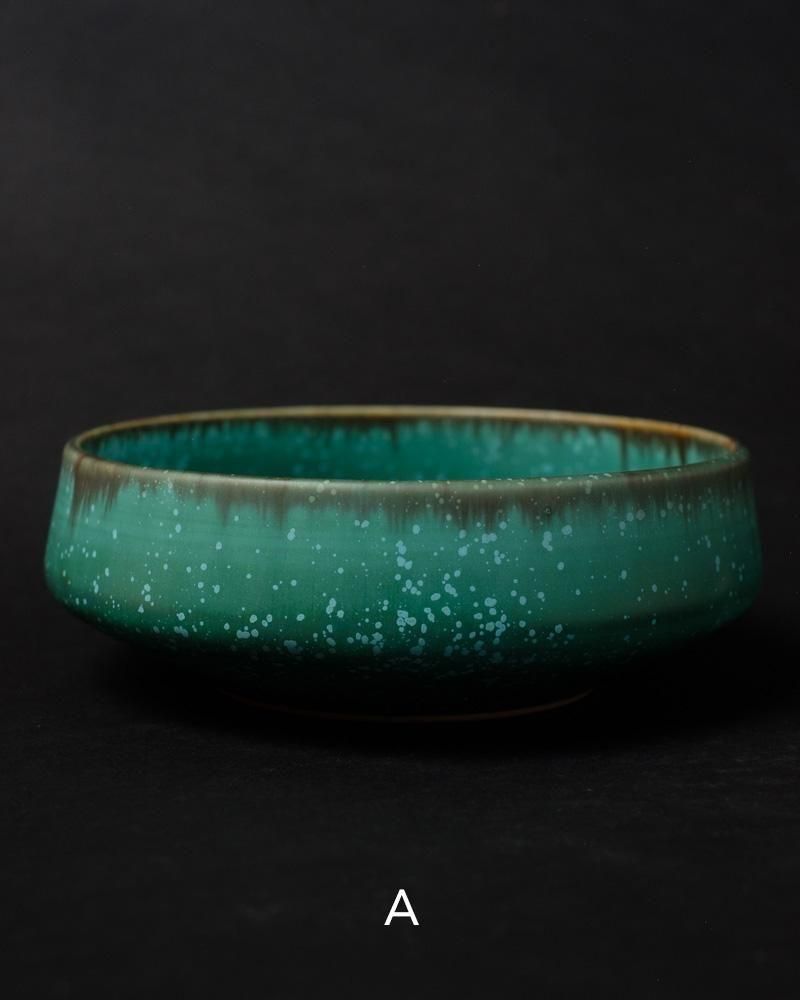 結晶釉という釉薬を用い、結晶の形成の仕方で1点1点表情が異なった仕上がりになります。
