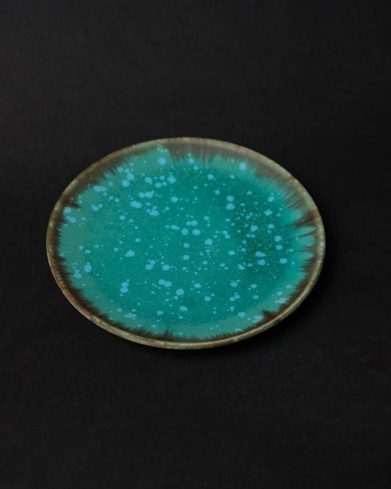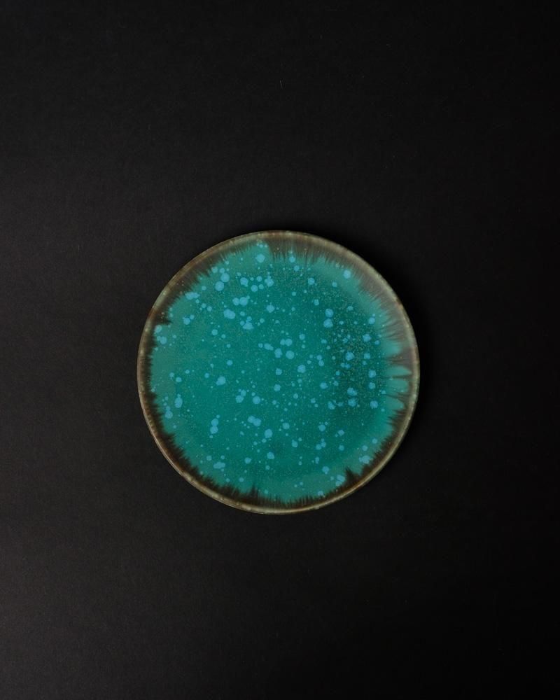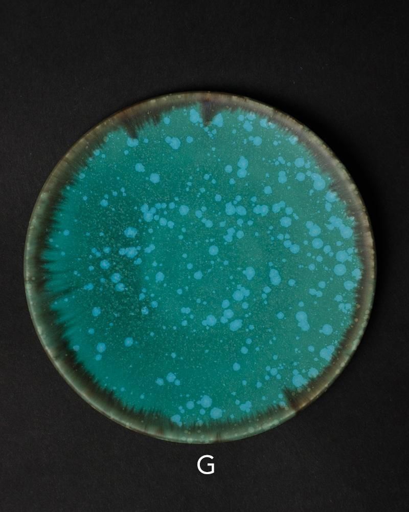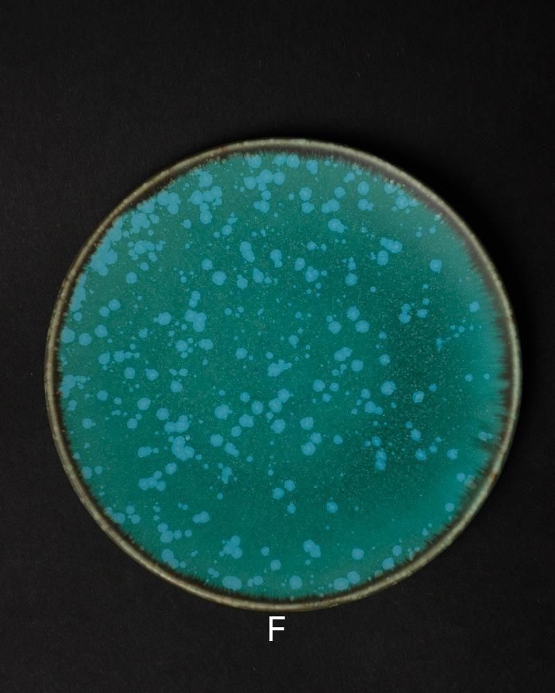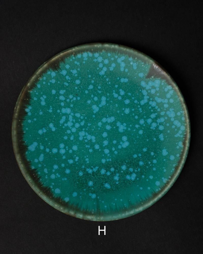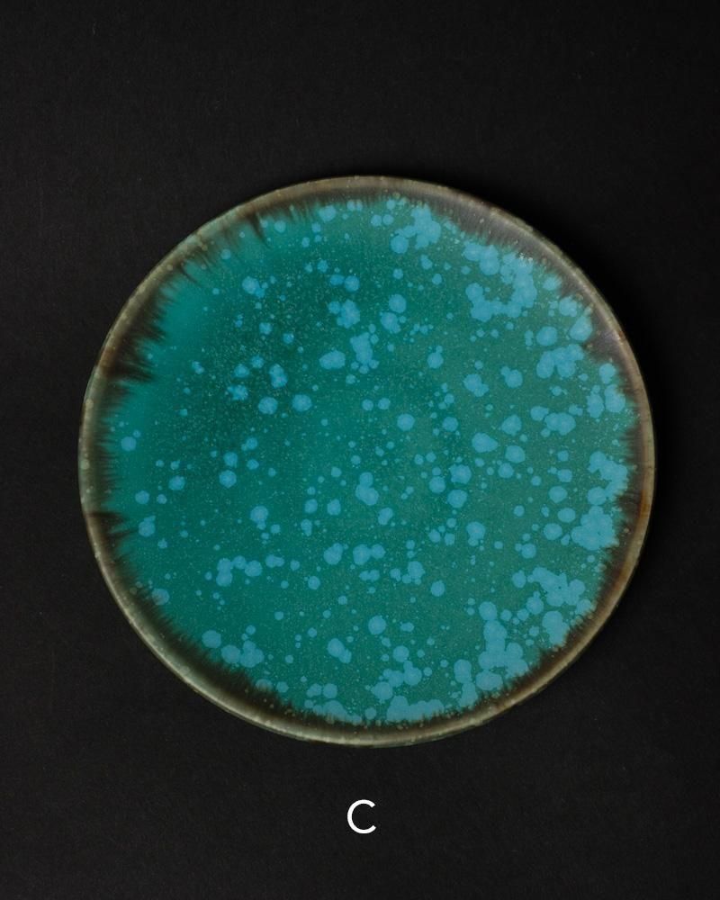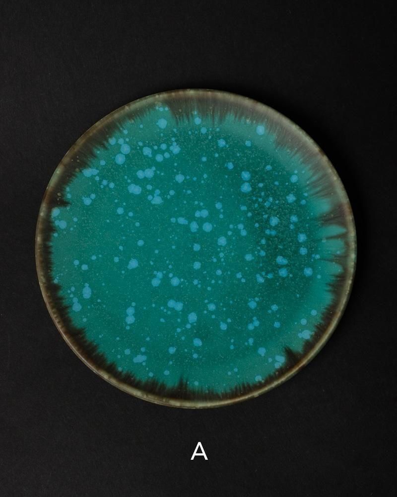 結晶釉という釉薬を用い、結晶の形成の仕方で1点1点表情が異なった仕上がりになります。