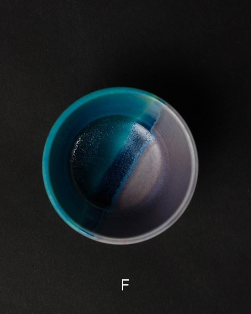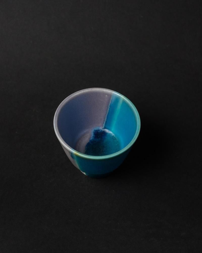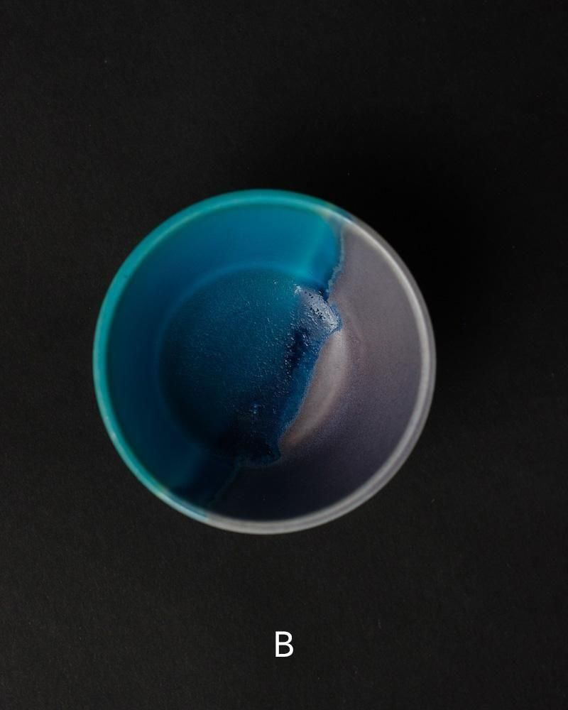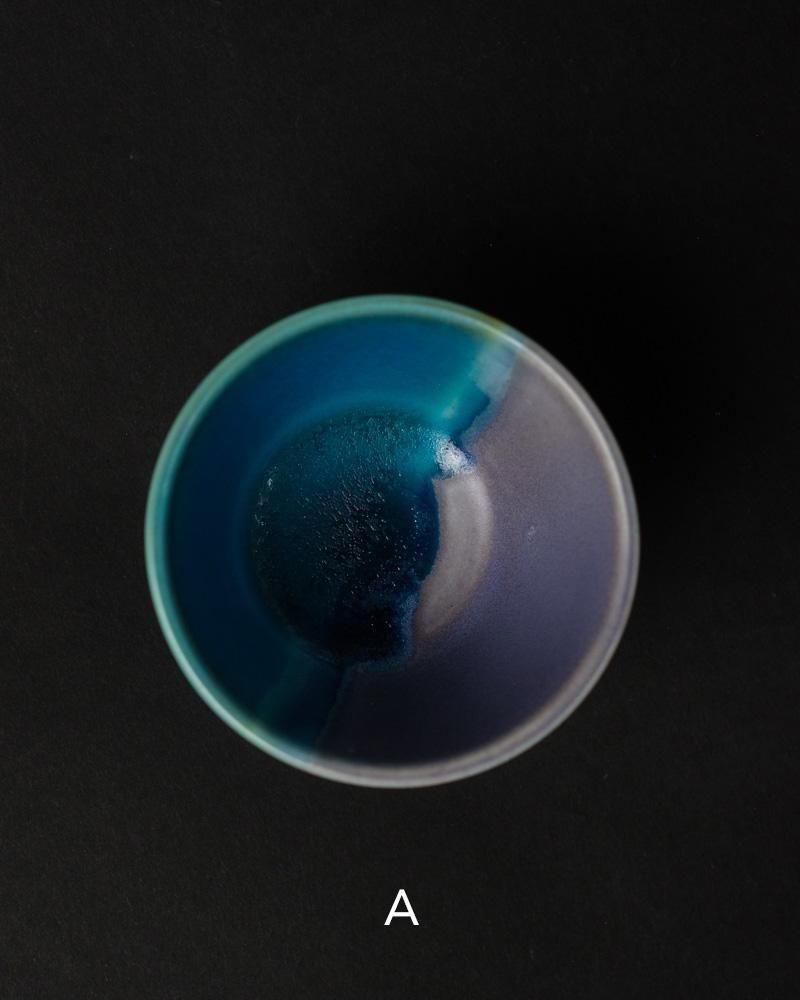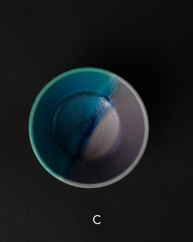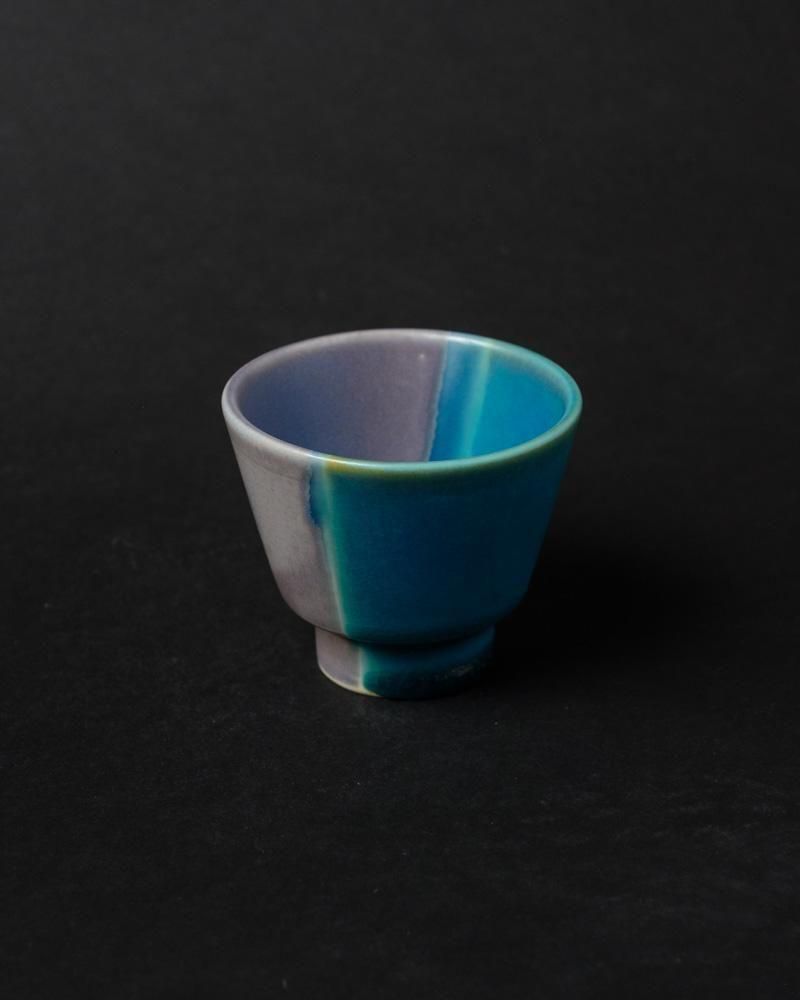 蒼滴釉とウィステリア釉を掛け分けた器。