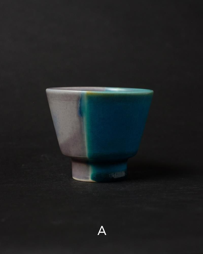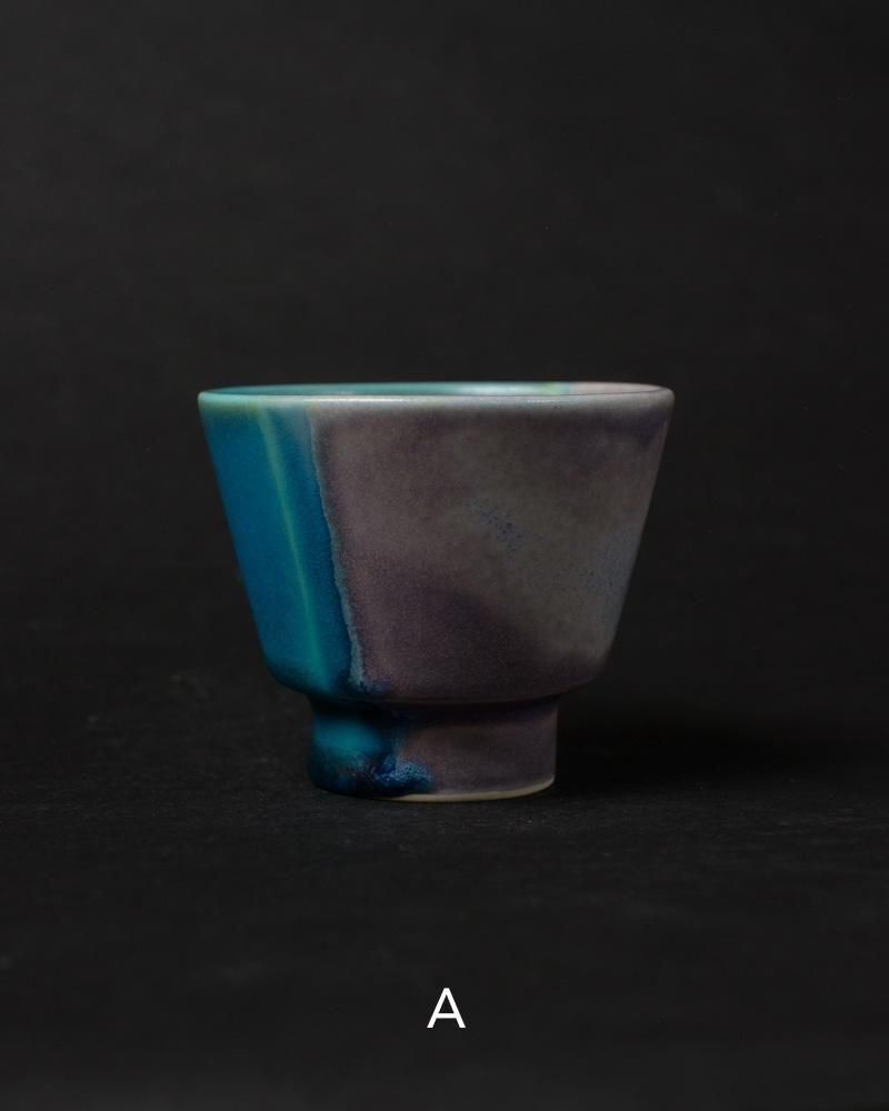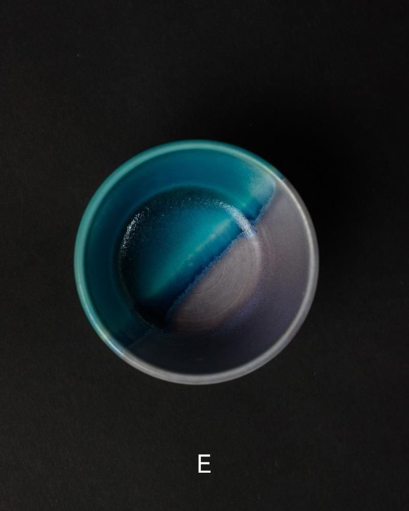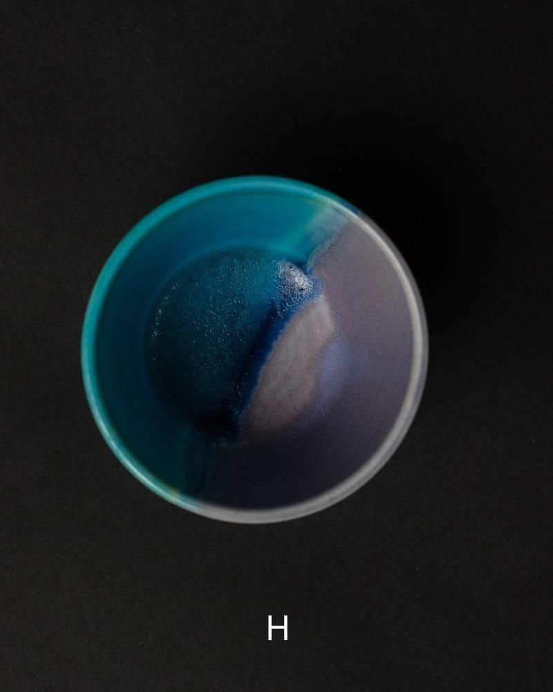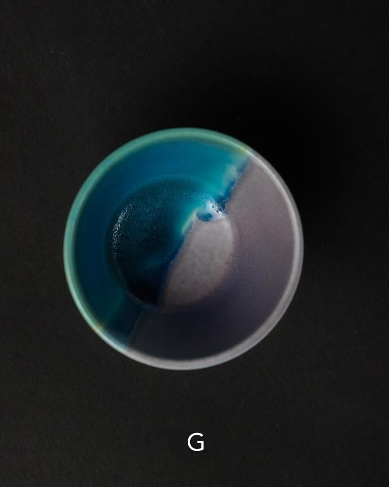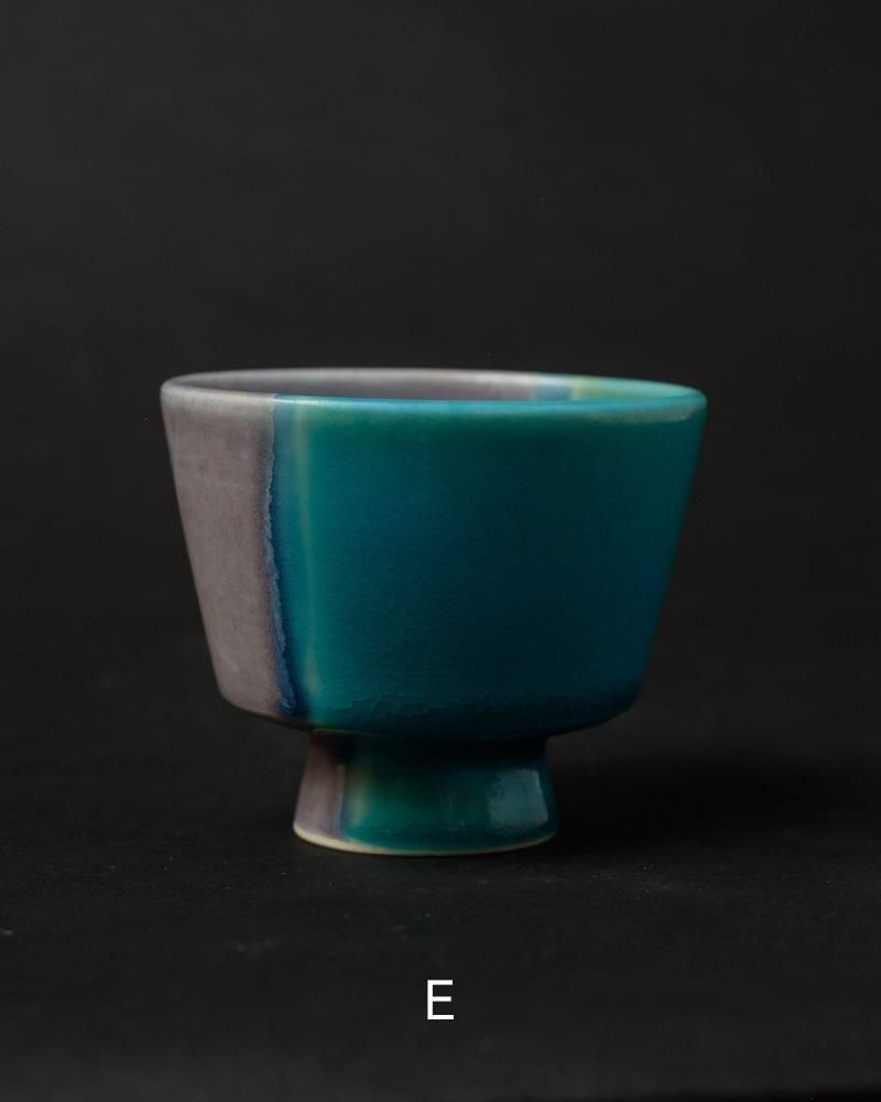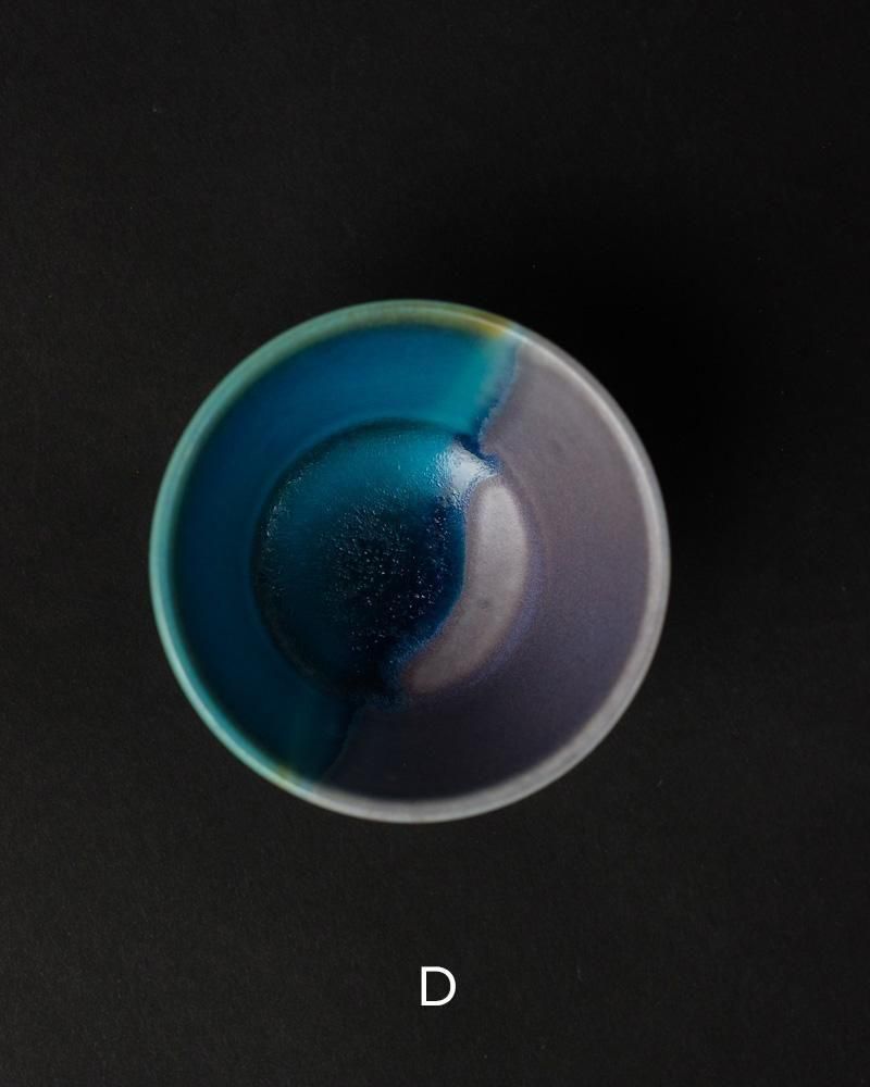蒼滴釉とウィステリア釉を掛け分けた器。