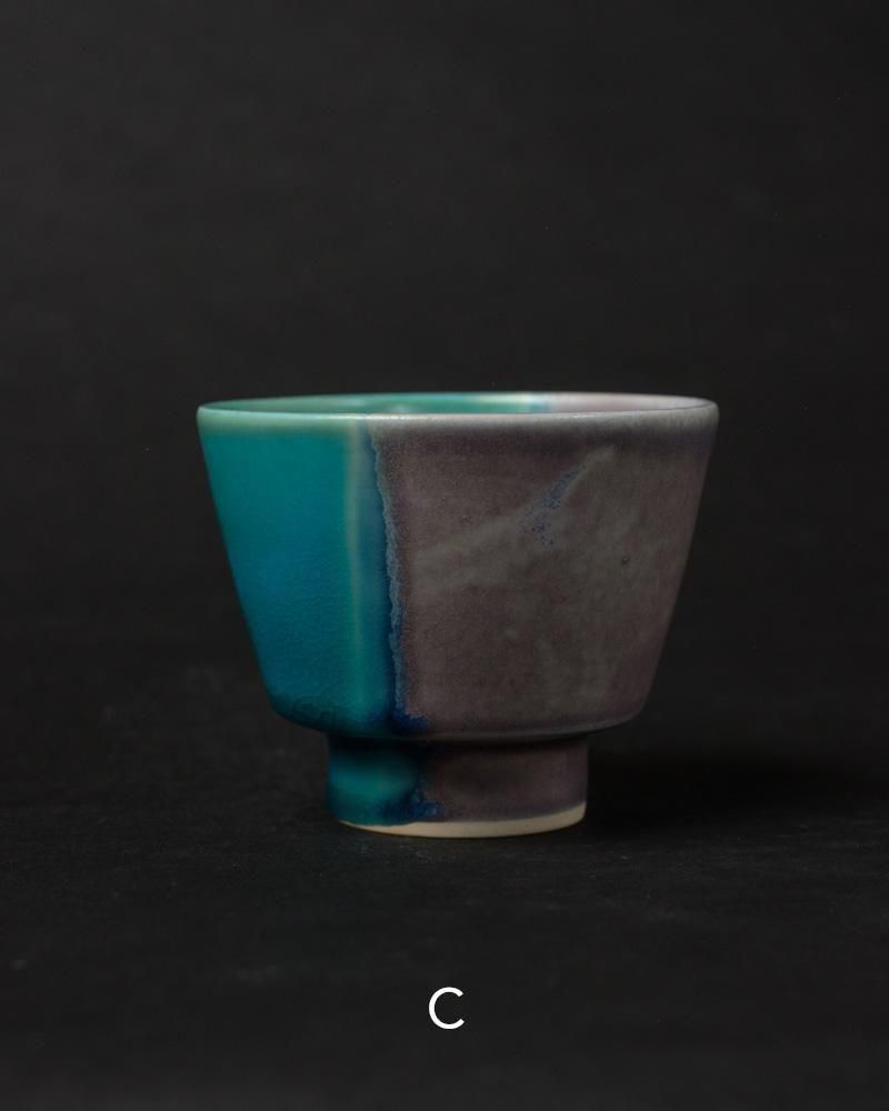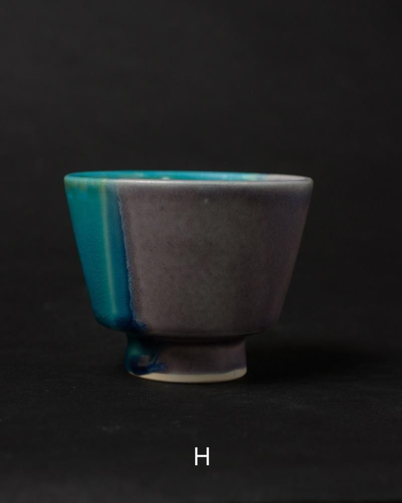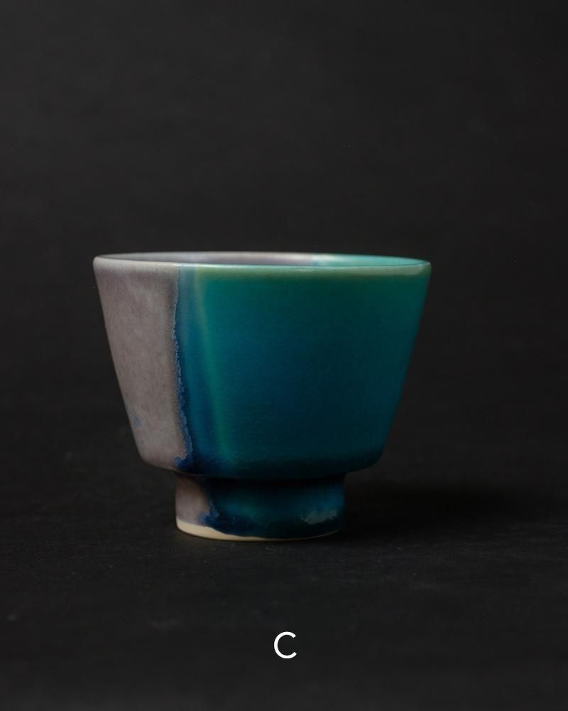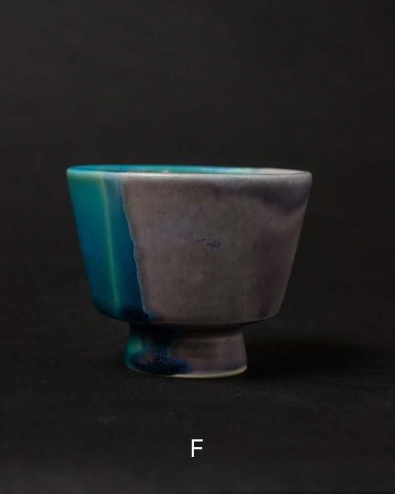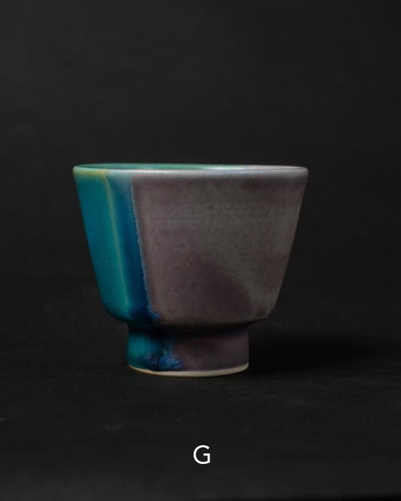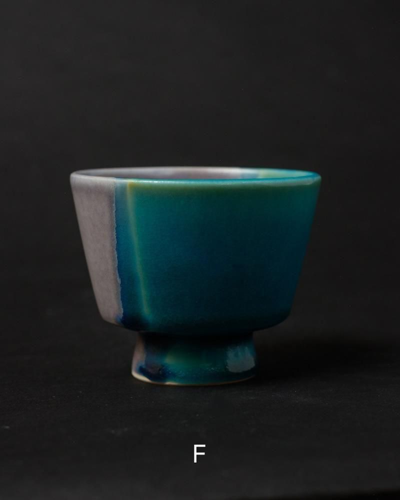 蒼滴釉とウィステリア釉を掛け分けた器。