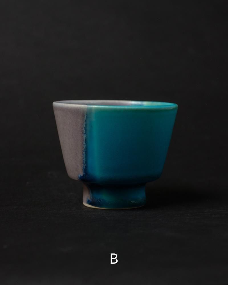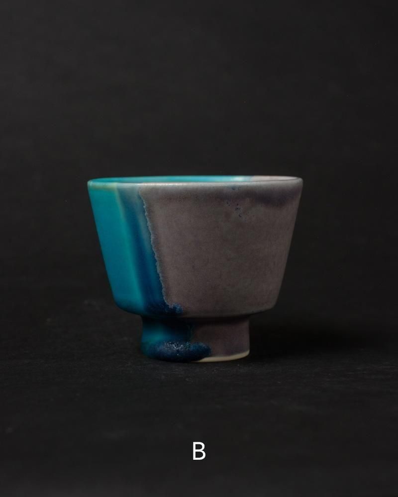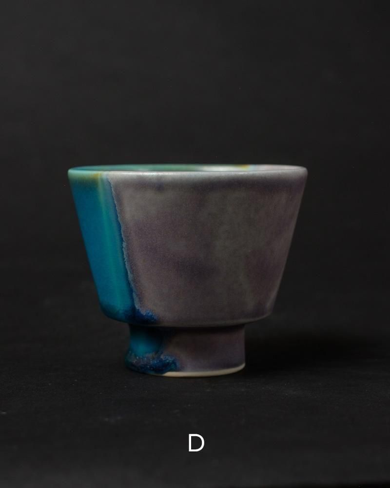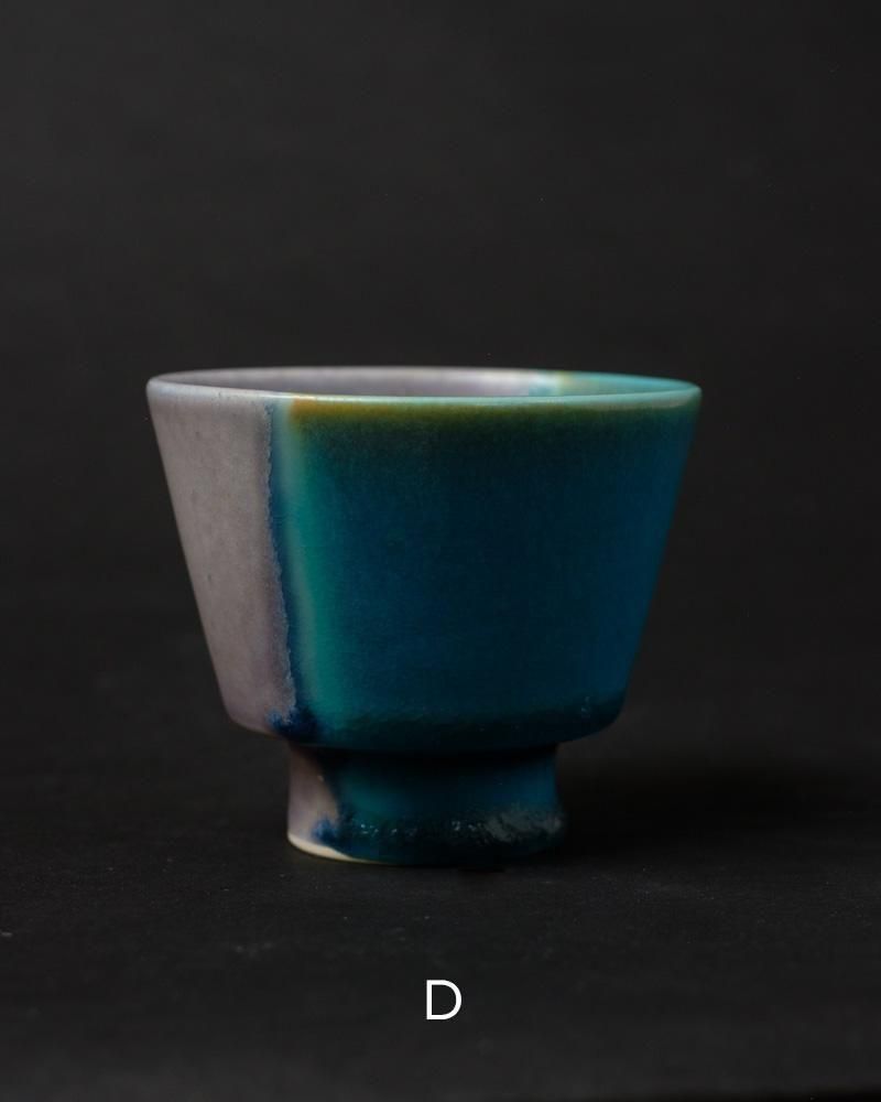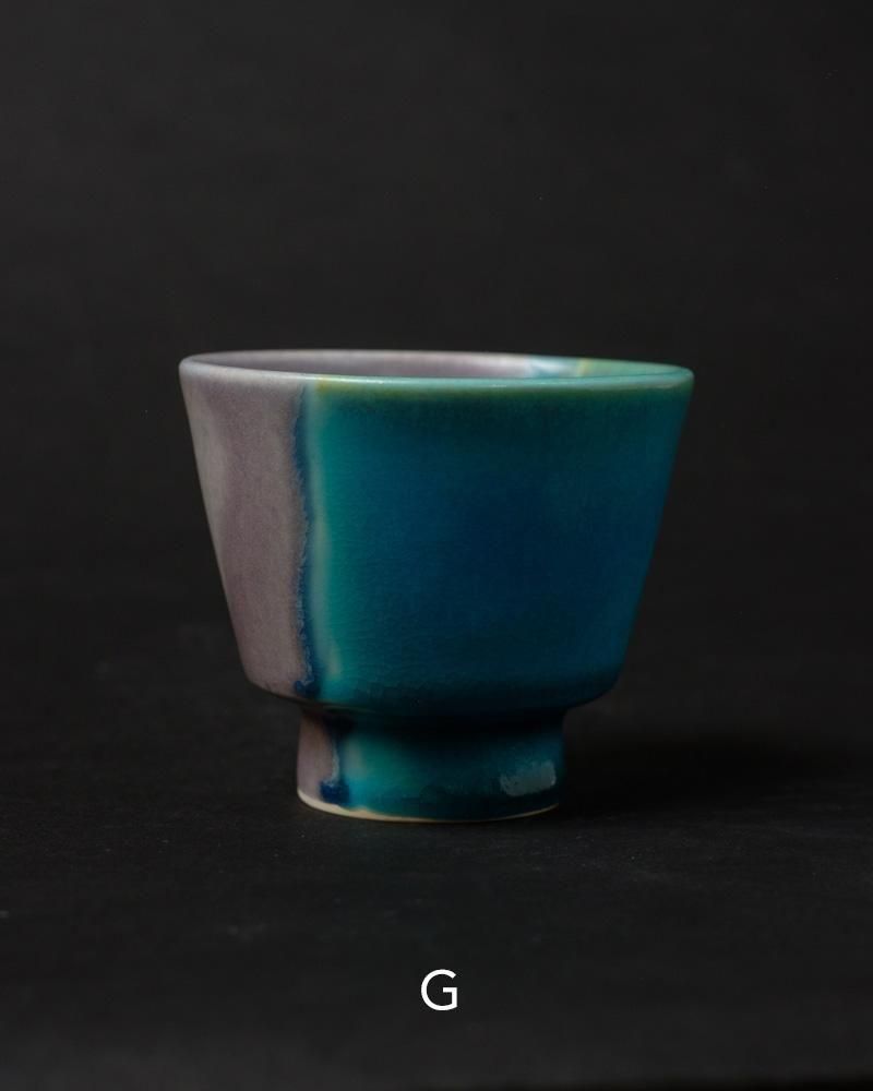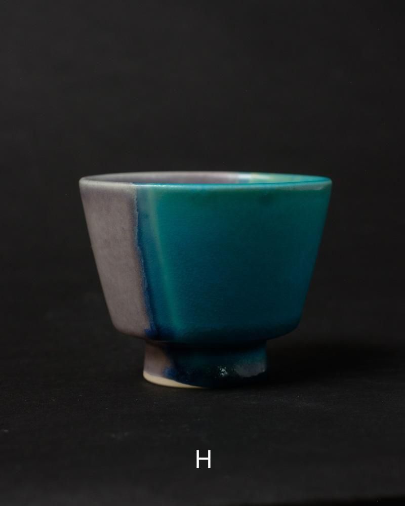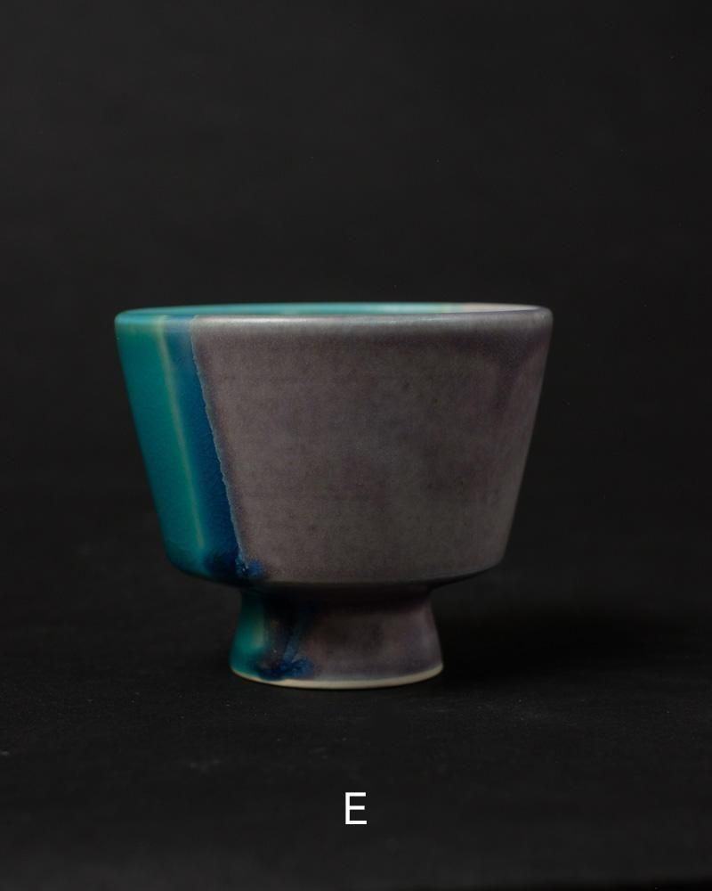 蒼滴釉とウィステリア釉を掛け分けた器。