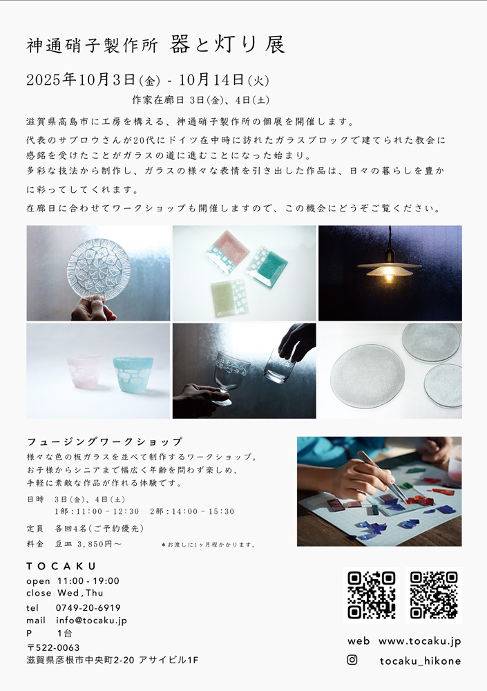 滋賀県高島市に工房を構える、神通硝子製作所の個展を開催します。