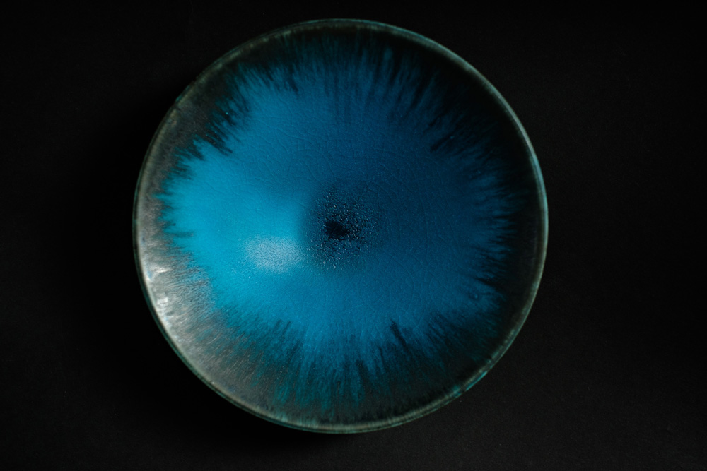 3年ぶりとなる本展は、代表的なトルコ釉の器をはじめ、様々な青の表情の作品が並びます。