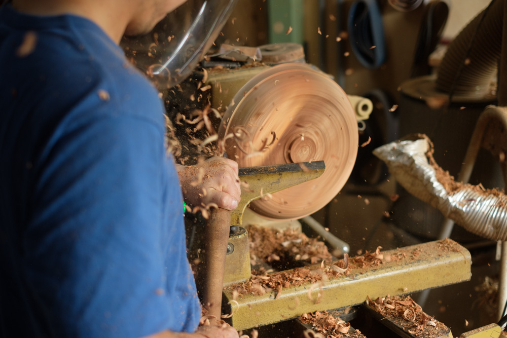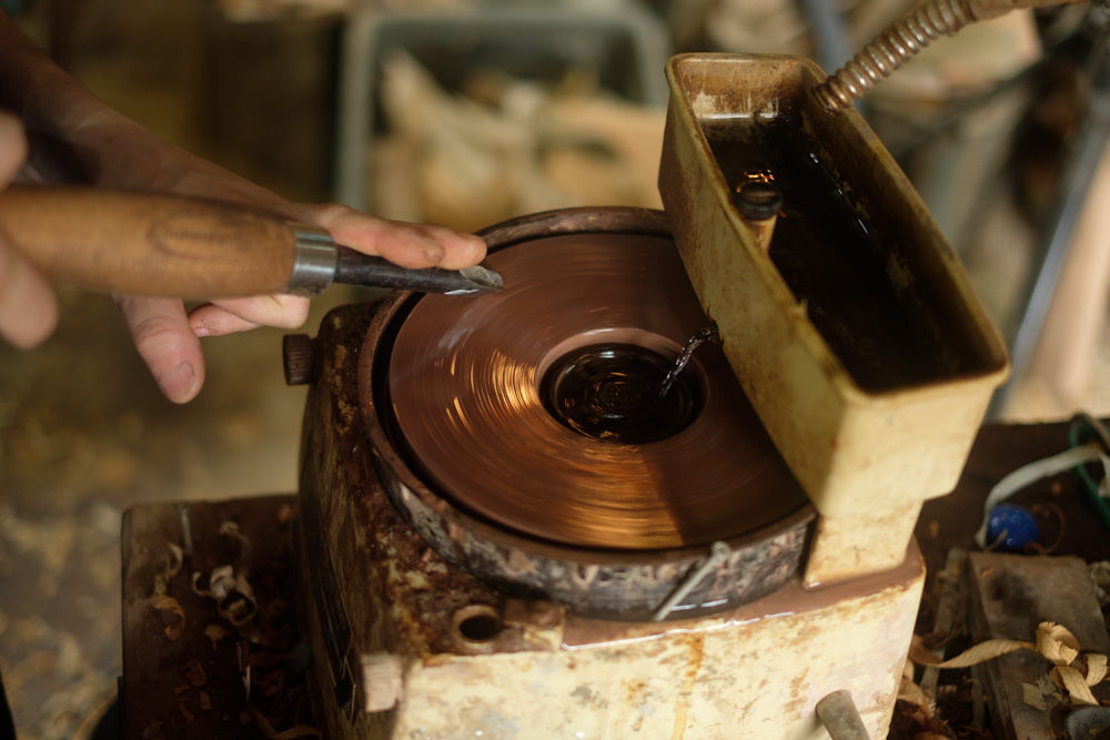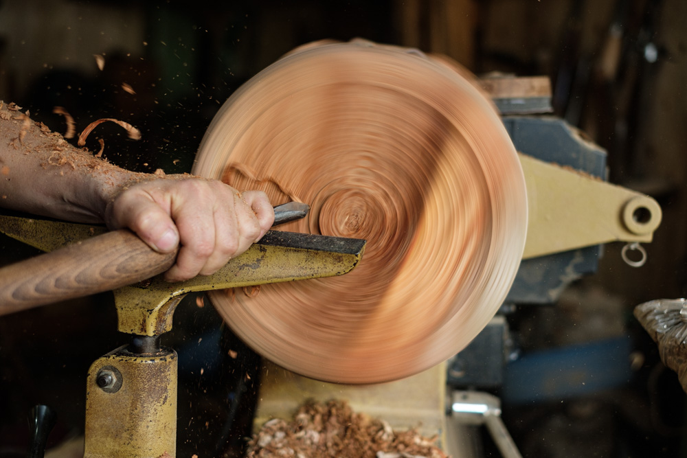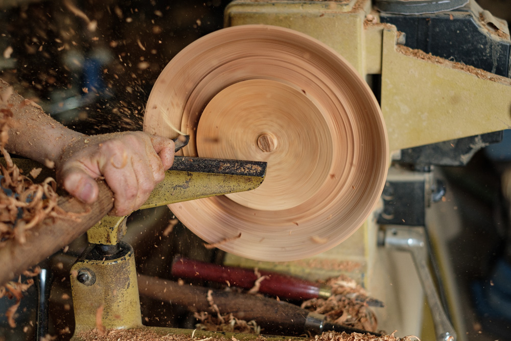 グリーンウッドワークというと、手道具で加工することが多いですが、鈴木さんは旋盤などの電装工具も使い大きなお皿などの道具も製作されています。